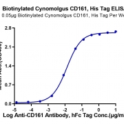 Immobilized Biotinylated Cynomolgus CD161, His Tag at 0.5ug/ml (100ul/Well) on the streptavidin precoated plate (5ug/ml). Dose response curve for Anti-CD161 Antibody, hFc Tag with the EC50 of 12.8ng/ml determined by ELISA. See testing image for detail.