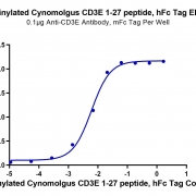 Immobilized Anti-CD3 Antibody, mFc Tag at 1ug/ml (100ul/well) on the plate. Dose response curve for Biotinylated Cynomolgus CD3E 1-27 peptide, hFc Tag with the EC50 of 6ng/ml determined by ELISA. See testing image for detail.