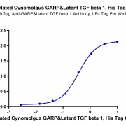 Immobilized Anti-GARP&Latent TGF beta 1 Antibody, hFc Tag at 2ug/ml (100ul/well) on the plate. Dose response curve for Biotinylated Cynomolgus GARP&Latent TGF beta 1 Complex, His Tag with the EC50 of 0.38ug/ml determined by ELISA. See testing image for detail.