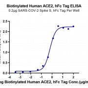Immobilized SARS-COV-2 Spike S, hFc Tag at 2ug/ml (100ul/well) on the plate. Dose response curve for Biotinylated Human ACE2, hFc Tag with the EC50 of 0.63ug/ml determined by ELISA. See testing image for detail.