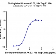 Immobilized SARS-COV-2 S1, His Tag at 2ug/ml (100ul/Well). Dose response curve for Biotinylated Human ACE2, His Tag with EC50 of 0.24ug/ml determined by ELISA. See testing image for detail.
