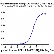 Immobilized Anti-AFP (HLA-A*02:01) Antibody, hFc Tag at 2ug/ml (100ul/Well) on the plate. Dose response curve for Biotinylated Human AFP (HLA-A*02:01) , His Tag with the EC50 of 0.31ug/ml determined by ELISA. See testing image for detail.