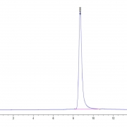 The protein has a predicted MW of 50.70 kDa. Due to glycosylation, the protein migrates to 53-60 kDa based on Tris-Bis PAGE result.