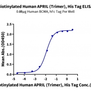 Immobilized Human BCMA, hFc Tag at 0.5ug/ml (100ul/well) on the plate. Dose response curve for Biotinylated Human APRIL (Trimer) , His Tag with the EC50 of 11.9ng/ml determined by ELISA. See testing image for detail.