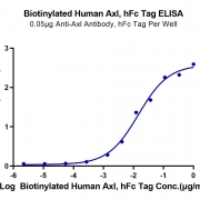 Immobilized Anti-Axl Antibody at 0.5ug/ml (100ul/well) on the plate. Dose response curve for Biotinylated Human Axl, hFc Tag with the EC50 of 14.6ng/ml determined by ELISA. See testing image for detail.