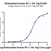 Immobilized Human CTLA-4, hFc Tag at 2ug/ml (100ul/well) on the plate. Dose response curve for Biotinylated Human B7-1, His Tag with the EC50 of 1.9ug/ml determined by ELISA. See testing image for detail.