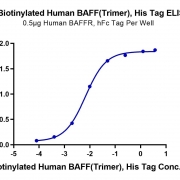 Immobilized Human BAFFR, hFc Tag at 5ug/ml (100ul/Well) on the plate. Dose response curve for Biotinylated Human BAFF (Trimer) , His Tag with the EC50 of 6.9ng/ml determined by ELISA. See testing image for detail.