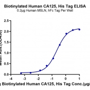Immobilized Human MSLN, hFc Tag at 2ug/ml (100ul/well) on the plate. Dose response curve for Biotinylated Human CA125, His Tag with the EC50 of 0.2ug/ml determined by ELISA. See testing image for detail.