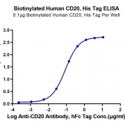 Immobilized Biotinylated Human CD20, His Tag at 1ug/ml (100ul/well) on the streptavidin precoated plate (5ug/ml). Dose response curve for Anti-CD20 Antibody, hFc Tag with the EC50 of 87.3ng/ml determined by ELISA. See testing image for detail.