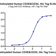 Immobilized Anti-CD3 Antibody, mFc Tag at 5ug/ml (100ul/well) on the plate. Dose response curve for Biotinylated Human CD3E&CD3G, His Tag with the EC50 of 1.42ug/ml determined by ELISA. See testing image for detail.