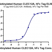 Immobilized Anti-CLEC12A Antibody, hFc Tag at 1ug/ml (100ul/Well) on the plate. Dose response curve for Biotinylated Human CLEC12A, hFc Tag with the EC50 of 21.1ng/ml determined by ELISA. See testing image for detail.