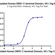 Recombinant Biotinylated Human DKK1 C terminal Domain Protein is expressed from HEK293 with hFc tag and Avi tag at the C-terminal.It contains Met178-His266.