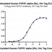 Immobilized Anti-FGFR1 Anitibody, hFc Tag at 0.5ug/ml (100ul/Well) on the plate. Dose response curve for Biotinylated Human FGFR1 alpha (IIIc) , His Tag with the EC50 of 25.9ng/ml determined by ELISA. See testing image for detail.