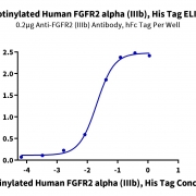 Immobilized Anti-FGFR2 alpha (IIIb) Antibody, hFc Tag at 2ug/ml (100ul/well) on the plate. Dose response curve for Biotinylated Human FGFR2 alpha (IIIb) , His Tag with the EC50 of 20.3ng/ml determined by ELISA. See testing image for detail.