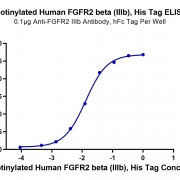 Immobilized Anti-FGFR2 IIIb Antibody, hFc Tag at 1ug/ml (100ul/well) on the plate. Dose response curve for Biotinylated Human FGFR2 beta (IIIb) , His Tag with the EC50 of 13.1ng/ml determined by ELISA. See testing image for detail.