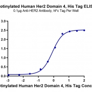 Immobilized Anti-HER2 Antibody, hFc Tag at 1ug/ml (100ul/well) on the plate. Dose response curve for Biotinylated Human Her2 Domain 4, His Tag with the EC50 of 0.82ug/ml determined by ELISA. See testing image for detail.