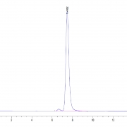 The protein has a predicted MW of 50.5 kDa. Due to glycosylation, the protein migrates to 51-60 kDa based on Tris-Bis PAGE result.