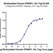 Immobilized Anti-IFNAR1 Antibody, hFc Tag at 0.5ug/ml (100ul/well) on the plate. Dose response curve for Biotinylated Human IFNAR1, His Tag with the EC50 of 2.5ng/ml determined by ELISA. See testing image for detail.