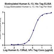 Immobilized Biotinylated Human IL-13, His Tag at 2ug/ml (100ul/well) on the streptavidin (5ug/ml) precoated plate. Dose response curve for Human IL-13Ra2, hFc Tag with the EC50 of 1.4ug/ml determined by ELISA. See testing image for detail.