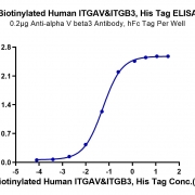 Immobilized Anti-alpha V beta3 Antibody, hFc Tag at 2ug/ml (100ul/well) on the plate. Dose response curve for Biotinylated Human ITGAV&ITGB3, His Tag with the EC50 of 54ng/ml determined by ELISA. See testing image for detail.