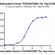 Immobilized Anti-alpha V Antibody, hFc Tag at 1ug/ml (100ul/well) on the plate. Dose response curve for Biotinylated Human ITGAV&ITGB5, His Tag with the EC50 of 0.29ug/ml determined by ELISA. See testing image for detail.