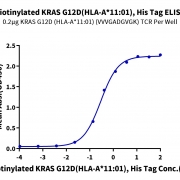 Immobilized KRAS G12D (HLA-A*11:01) (VVVGADGVGK) TCR at 2ug/ml (100ul/well) on the plate. Dose response curve for Biotinylated Human KRAS G12D (HLA-A*11:01) , His Tag with the EC50 of 0.29ug/ml determined by ELISA. See testing image for detail.