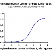 Immobilized Human ITGAV&ITGB6, His Tag at 1ug/ml (100ul/Well) on the plate. Dose response curve for Biotinylated Human Latent TGF beta 1, His Tag with the EC50 of 0.49ug/ml determined by ELISA (QC Test). See testing image for detail.
