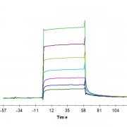 Immobilized Anti-CSF R Antibody, hFc Tag at 0.5ug/ml (100ul/Well) on the plate. Dose response curve for Biotinylated Human M-CSF R, His Tag with the EC50 of 27.7ng/ml determined by ELISA (QC Test). The affinity constant of 0.81 uM as determined in SPR assay (Biacore T200). See testing image for detail.