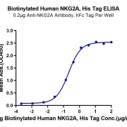 Immobilized Anti-NKG2A Antibody, hFc Tag at 2ug/ml (100ul/well) on the plate. Dose response curve for Biotinylated Human NKG2A, His Tag with the EC50 of 0.21ug/ml determined by ELISA. See testing image for detail.