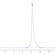 The protein has a predicted MW of 47.7 kDa. Due to glycosylation, the protein migrates to 55-65 kDa based on Tris-Bis PAGE result.