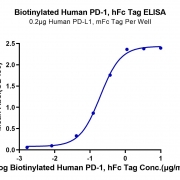 Immobilized Human PD-L1, mFc tag at 2ug/ml (100ul/Well). Dose response curve for Biotinylated Human PD-1, hFc tag with the EC50 of 0.19ug/ml determined by ELISA. See testing image for detail.