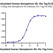 Immobilized Anti-Semaphorin 4D Antibody, hFc Tag at 0.5ug/ml (100ul/Well) on the plate. Dose response curve for Biotinylated Human Semaphorin 4D, His Tag with the EC50 of 44.8ng/ml determined by ELISA. See testing image for detail.
