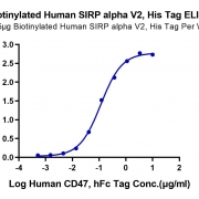 Immobilized Biotinylated Human SIRP alpha V2, His Tag at 0.5ug/ml (100ul/Well) on the plate. Dose response curve for Human CD47, hFc Tag with the EC50 of 0.11ung/ml determined by ELISA. See testing image for detail.