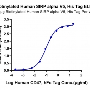 Immobilized Biotinylated Human SIRP alpha V5, His Tag at 1ug/ml (100ul/Well) on the plate. Dose response curve for Human CD47, hFc Tag with the EC50 of 0.1ug/ml determined by ELISA. See testing image for detail.