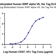 Recombinant Biotinylated Human SIRP alpha V6 Protein is expressed from HEK293 with His tag and Avi tag at the C-terminal.It contains Glu31-Arg370(S105P).