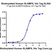 Immobilized Anti-SLAMF6 Antibody, hFc Tag at 1ug/ml (100ul/well) on the plate. Dose response curve for Biotinylated Human SLAMF6, His Tag with the EC50 of 16.8ng/ml determined by ELISA. See testing image for detail.