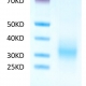 The protein has a predicted MW of 26 kDa. Due to glycosylation, the protein migrates to 38-50 kDa based on Tris-Bis PAGE result.