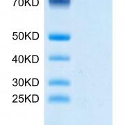 The protein has a predicted MW of 78.7 kDa. Due to glycosylation, the protein migrates to 100-120 kDa based on Tris-Bis PAGE result.