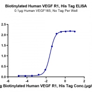 Immobilized Human VEGF165 at 1ug/ml (100ul/well) on the plate. Dose response curve for Biotinylated Human VEGF R1, His Tag with the EC50 of 26.9ng/ml determined by ELISA (QC Test). See testing image for detail.