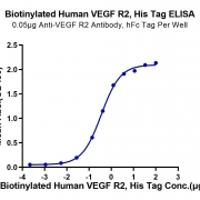 Immobilized Anti-VEGF R2 Antibody, hFc Tag at 0.5ug/ml (100ul/well) on the plate. Dose response curve for Biotinylated Human VEGF R2, His Tag with the EC50 of 0.35ug/ml determined by ELISA (QC Test). See testing image for detail.