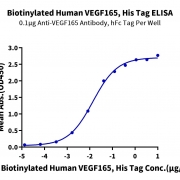 Immobilized Anti-VEGF165 Antibody at 1ug/ml (100ul/well) on the plate. Dose response curve for Biotinylated Human VEGF165, His Tag with the EC50 of 13.7ng/ml determined by ELISA. See testing image for detail.
