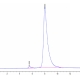 The protein has a predicted MW of 75.3 kDa. Due to glycosylation, the protein migrates to 80-100 kDa based on Tris-Bis PAGE result.