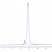 The protein has a predicted MW of 85.4 kDa. Due to glycosylation, the protein migrates to 90-150 kDa based on Tris-Bis PAGE result.