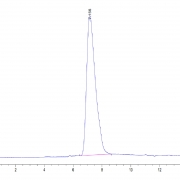 The protein has a predicted MW of 36 kDa. Due to glycosylation, the protein migrates to 70-83 kDa based on Tris-Bis PAGE result.