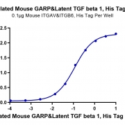 Immobilized Mouse ITGAV&ITGB6, His Tag at 1ug/ml (100ul/well) on the plate. Dose response curve for Biotinylated Mouse GARP&Latent TGF beta 1 Complex, His Tag with the EC50 of 0.12ug/ml determined by ELISA. See testing image for detail.
