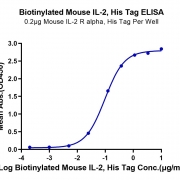 Immobilized Mouse IL-2 R alpha, His Tag at 2ug/ml (100ul/well) on the plate. Dose response curve for Biotinylated Mouse IL-2, His Tag with the EC50 of 95.8ng/ml determined by ELISA. See testing image for detail.