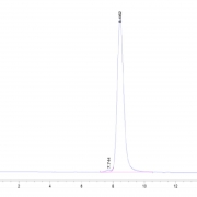 The protein has a predicted MW of 80.6 kDa. Due to glycosylation, the protein migrates to 90-110 kDa based on Tris-Bis PAGE result.