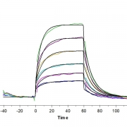 The affinity constant of 2.22 uM as determined in SPR assay (Biacore T200). See testing image for detail.
