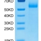 The protein has a predicted MW of 42.7 kDa. Due to glycosylation, the protein migrates to 55-65 kDa based on Tris-Bis PAGE result.