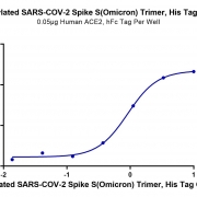 Immobilized Human ACE2, hFc Tag at 0.5ug/ml (100ul/well) on the plate. Dose response curve for Biotinylated SARS-COV-2 Spike S (Omicron B.1.1.529) Trimer, His Tag with the EC50 of 0.91ug/ml determined by ELISA. See testing image for detail.